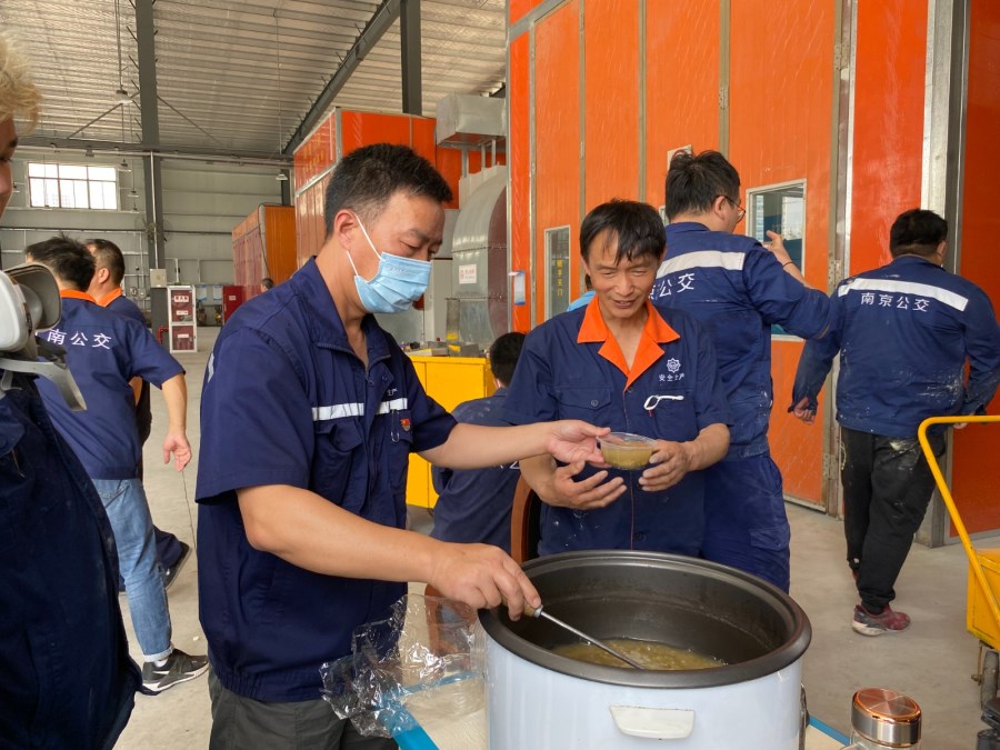 在沙洲噴烤漆房,由于車輛噴漆作業(yè)都在密閉高溫環(huán)境中進(jìn)行。炎熱的夏季,漆工作業(yè)環(huán)境更加艱苦。公司領(lǐng)導(dǎo)進(jìn)入工間,實(shí)地感受,再三叮囑作業(yè)人員注意防暑降溫。