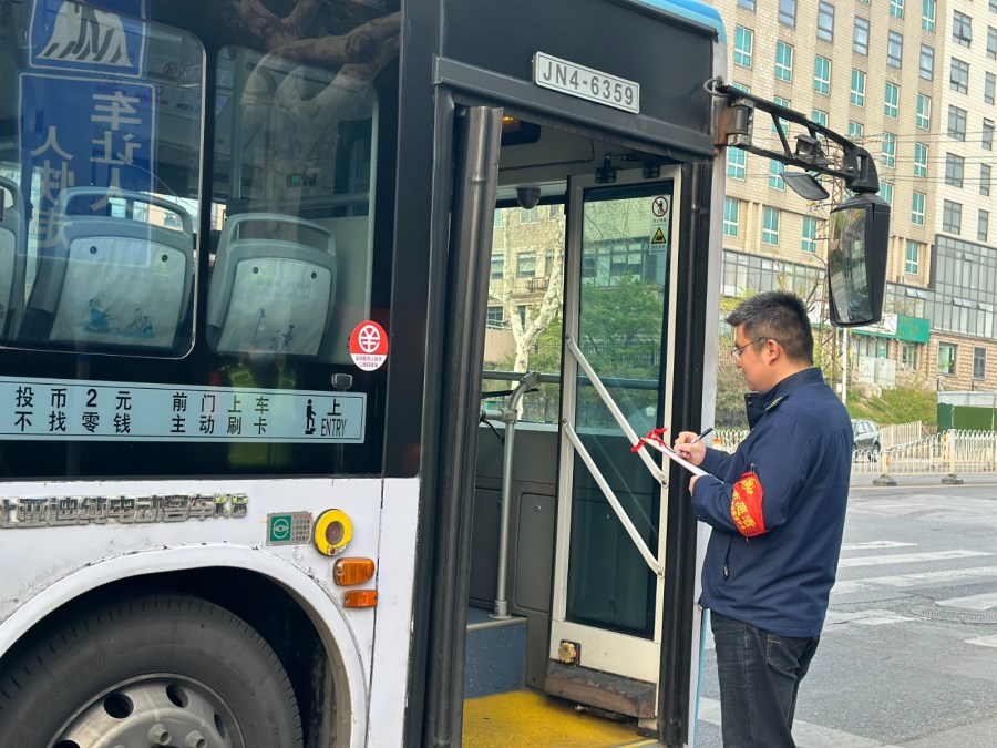 凌晨六點(diǎn)的城市尚未蘇醒,雨花臺(tái)南大門的公交站臺(tái)上,公交人就已經(jīng)開始忙碌起來了,今天支援B16路和B17路的駕駛員們正在擦拭車窗上"清明專線"的藍(lán)色標(biāo)識(shí),讓乘客們能更清楚地看到這班特殊專線的牌子。