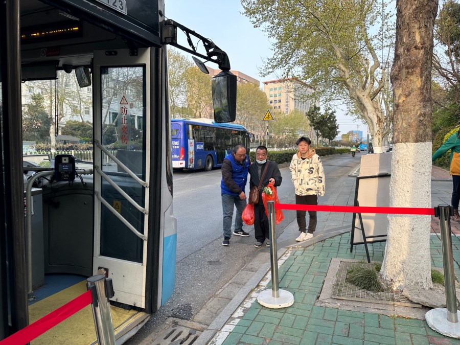 引導(dǎo)臺(tái)、排隊(duì)隔斷帶,全部安排到位。 藍(lán)馬甲志愿者們井然有序的站在車門邊上,眼觀六路,耳聽八方,隨時(shí)觀察著有需要幫助的乘客。清明祭掃是清明節(jié)的核心習(xí)俗,表達(dá)對(duì)先人的懷念和孝道,并且老年乘客較多,手上攜帶著對(duì)離世親人的寄托紙幣、鮮花等到墓前?!?80”志愿者們,看到行動(dòng)不便的老年人,主動(dòng)上前,給予最溫柔的微笑和溫暖的幫扶,并囑咐老人們慢點(diǎn)。周圍乘客看到此情景也紛紛表示贊揚(yáng)。這也讓公共服務(wù)呈現(xiàn)出超越運(yùn)輸工具的精神向度。
