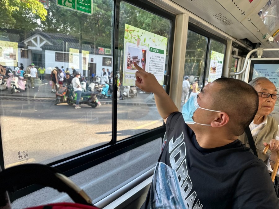 “202路途經(jīng)雨花臺(tái)、大報(bào)恩寺、老門(mén)東、夫子廟、瞻園、靈谷寺等眾多歷史文化景點(diǎn),我們制作了公交線路途經(jīng)景點(diǎn)的宣傳畫(huà)和易拉寶,希望可以更好地宣傳南京城市形象,促進(jìn)文化傳播?!逼?chē)四隊(duì)副書(shū)記陳燕鳴介紹到。